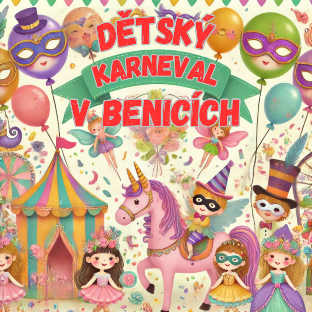 Zveme Vás na Dětský Karneval! Přijďte si užít odpoledne plné zábavy, her a tance v maskách! Čeká na vás bohatý program, soutěže a nabitý program pro děti.
